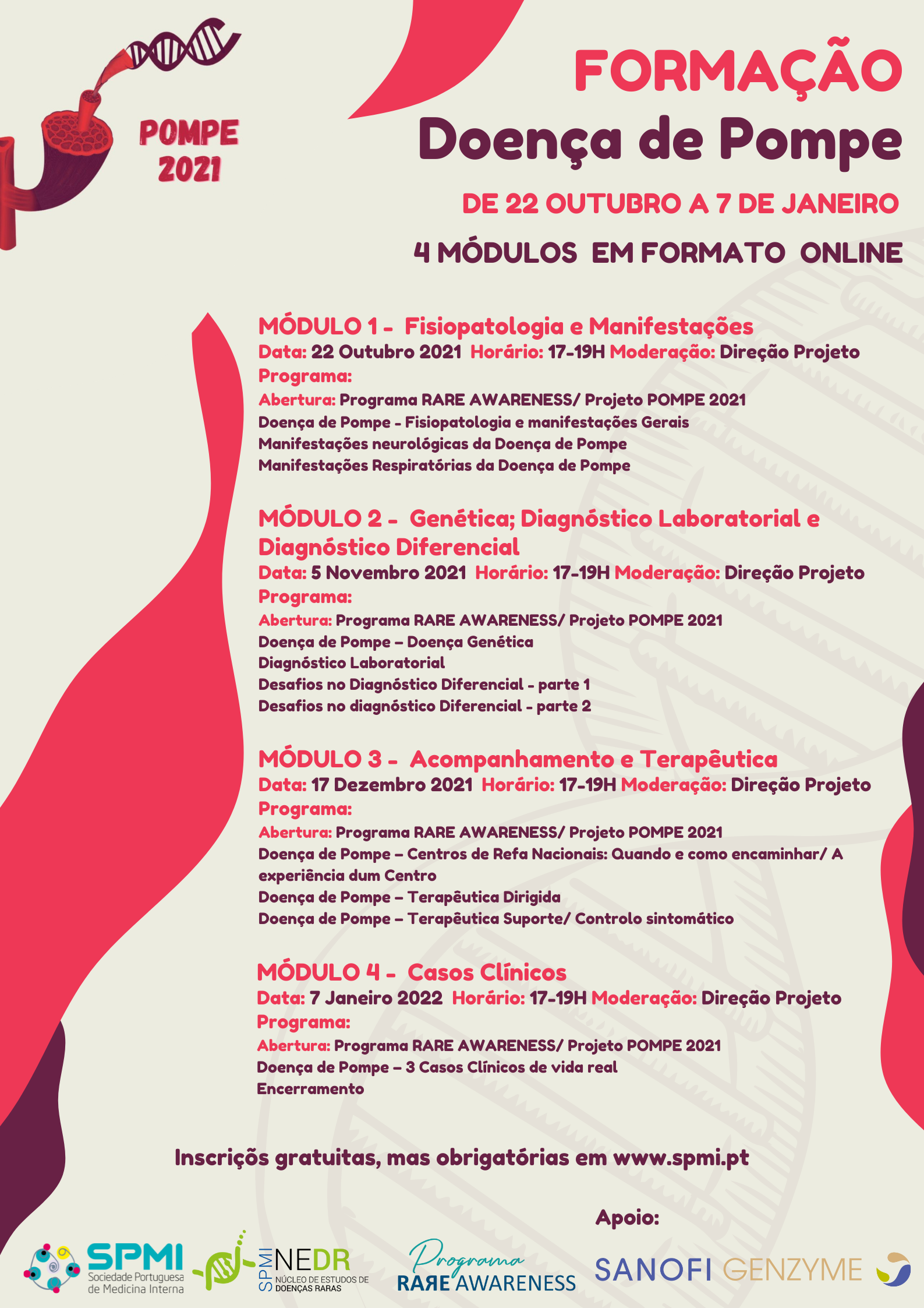 O projeto POMPE 2021, é um projeto do NEDR da SPMI enquadrado no Programa Rare Awareness, completamente dedicado à Doença de Pompe e com o apoio da Sanofi Genzyme.… Ler mais